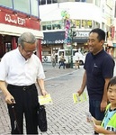 8月5日(土)17:00~まちなか防犯協議会・商店界連盟・警察・市役所職員など総勢20名程で迷惑客引きを禁止するチラシ配りをしました。
